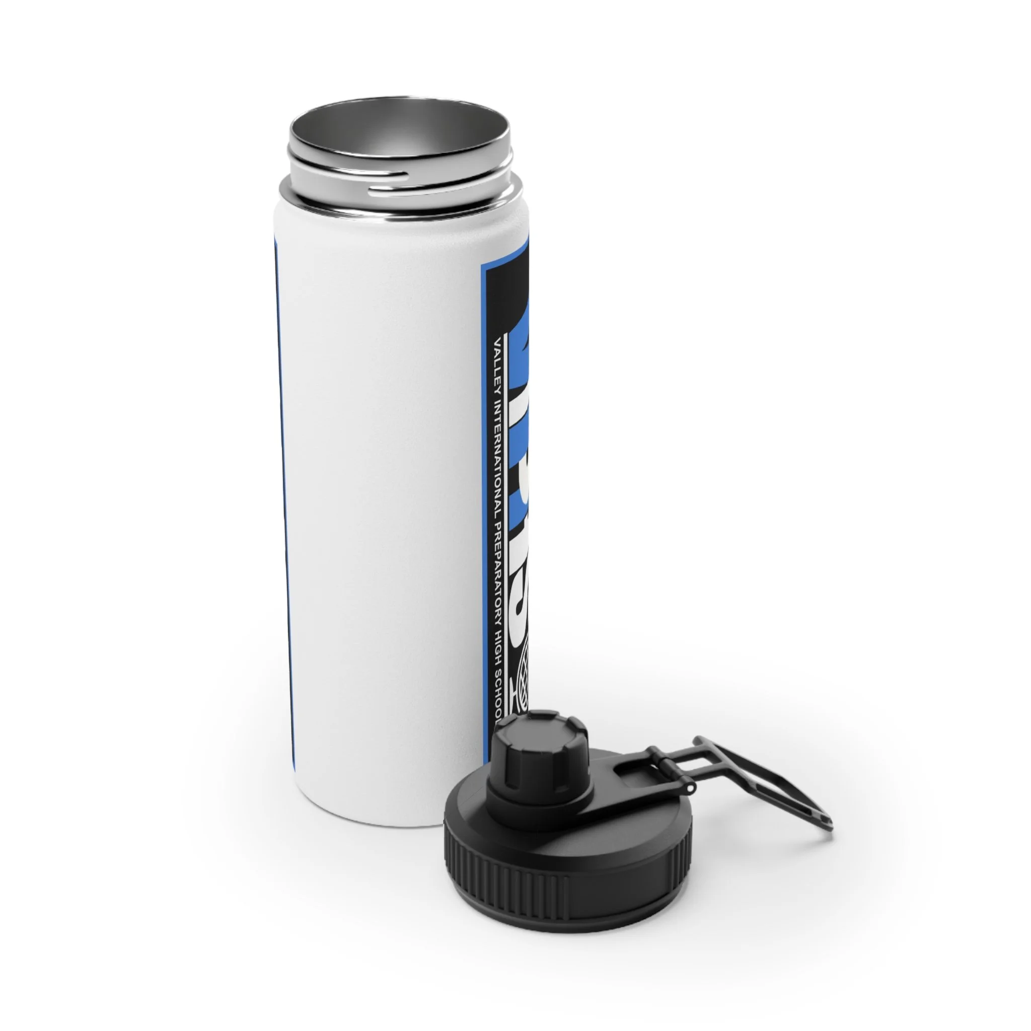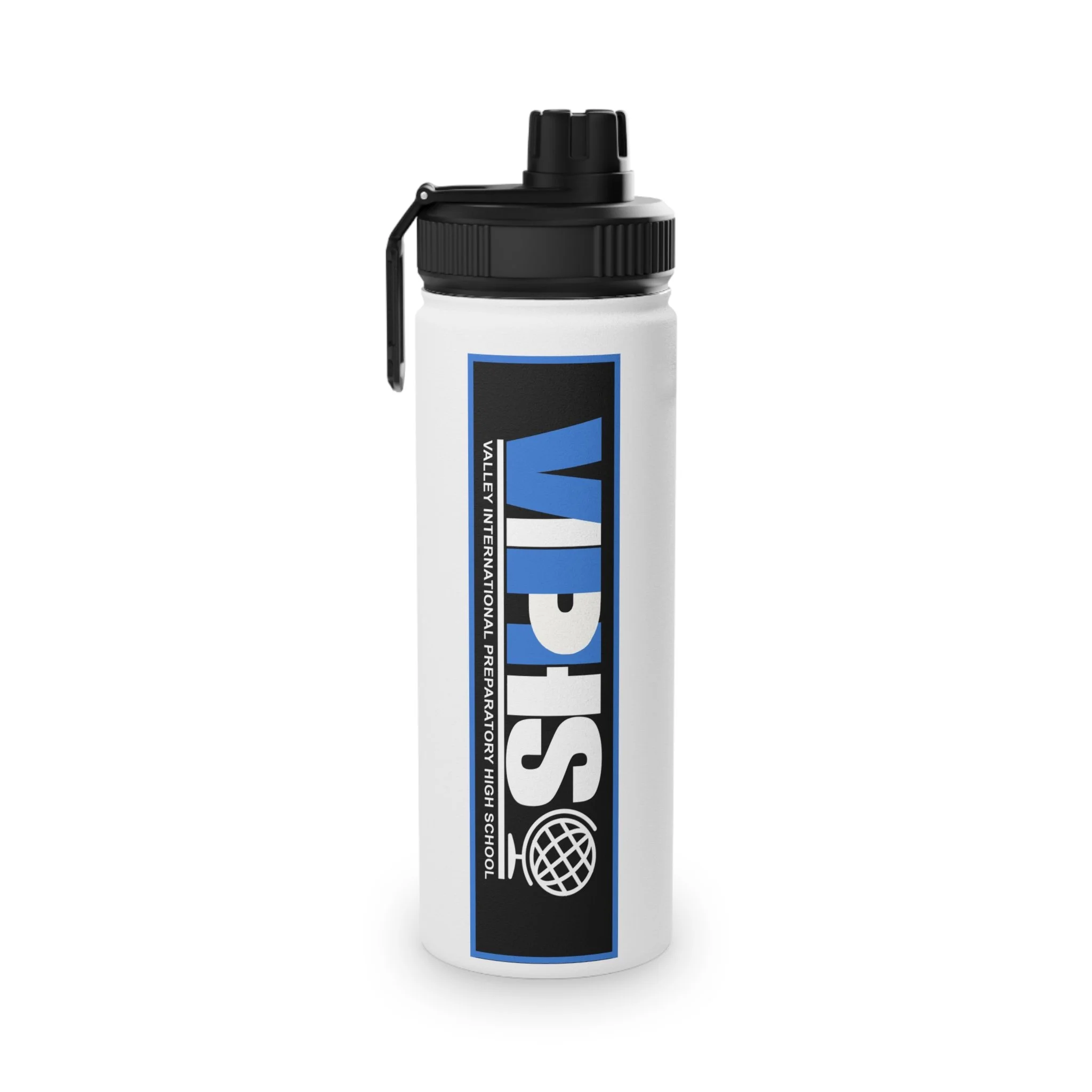 Quench your thirst in style with this stainless steel water bottle. Available in 3x sizes (12oz, 18oz, 32oz) this water bottle features a double-wall stainless steel construction that makes it a robust companion to all your excursions. This steel water bottle comes with a sports lid for easy sipping, making it excellent for all types of sports as well as training days at the gym and beyond.